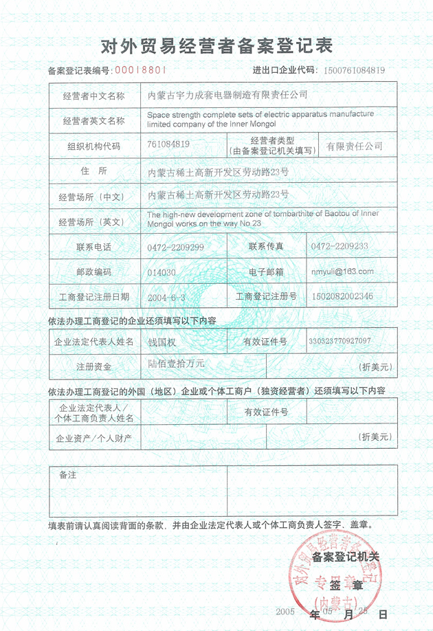 對外貿(mào)易經(jīng)營者備案登記表