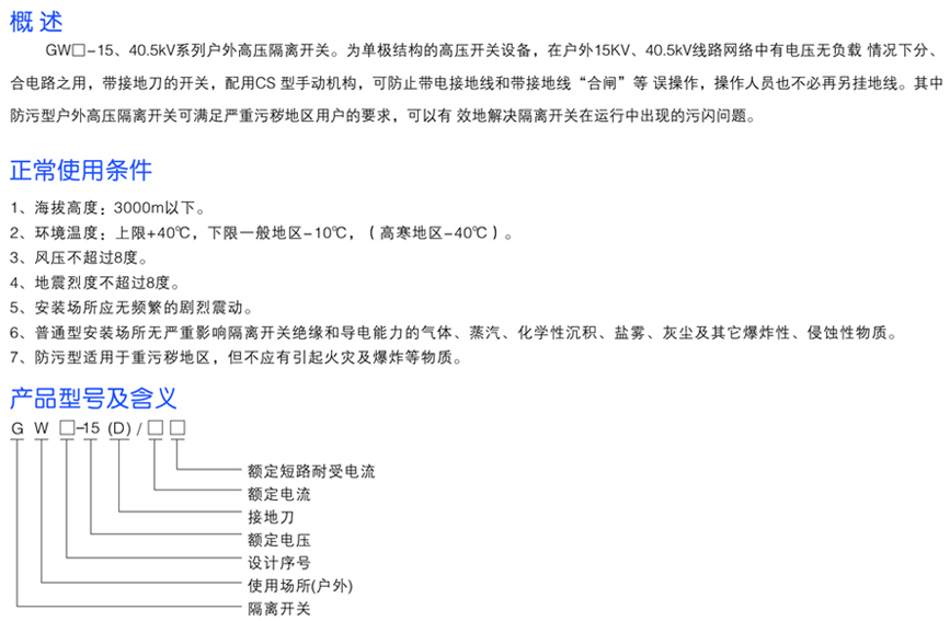 GW口-15系列戶(hù)外高壓隔離開(kāi)關(guān)