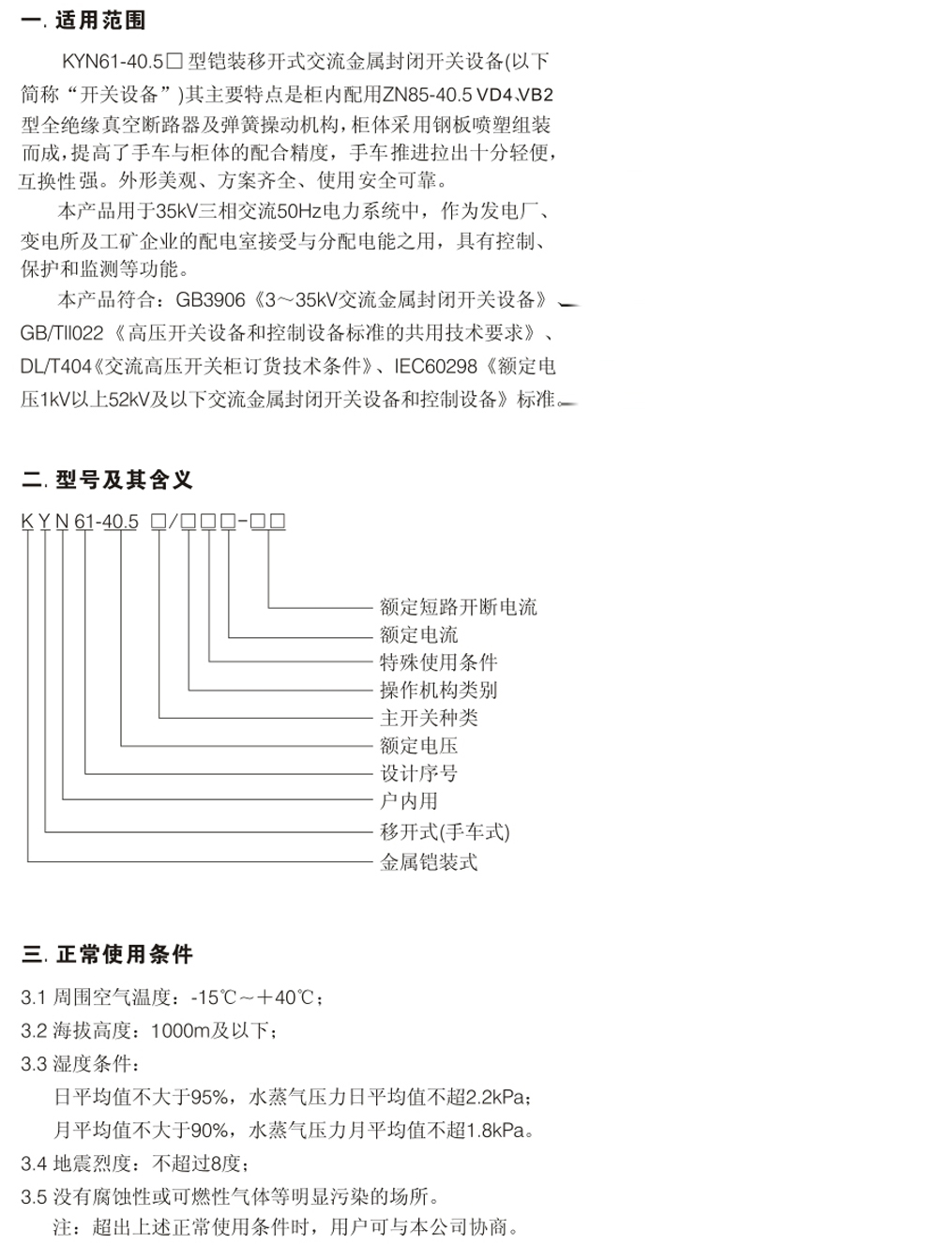 KYN61-40.5鎧裝移開(kāi)式金屬封閉開(kāi)關(guān)設(shè)備