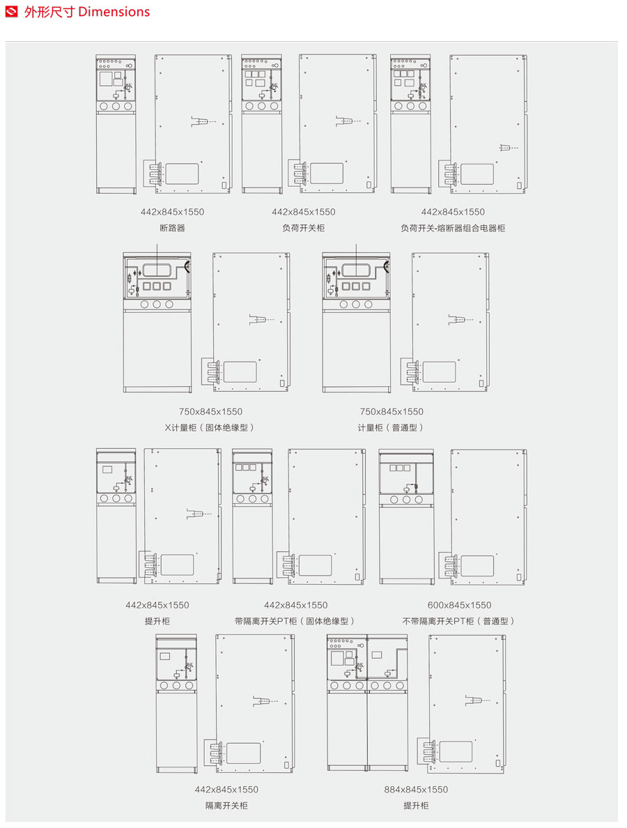 單體柜結(jié)構(gòu),全系列產(chǎn)品統(tǒng)一設(shè)計(jì),提供用戶需要的多種柜型,而且外形幾何尺寸完全一致。采用專業(yè)電纜附件廠商生產(chǎn)的通用 絕緣母線,電纜插拔頭。開關(guān)柜可現(xiàn)場(chǎng)組合,隨意擴(kuò)展,避免了多組組合拒帶來(lái)的運(yùn)輸,安裝的不便。如果用戶要求也可提供組合柜。