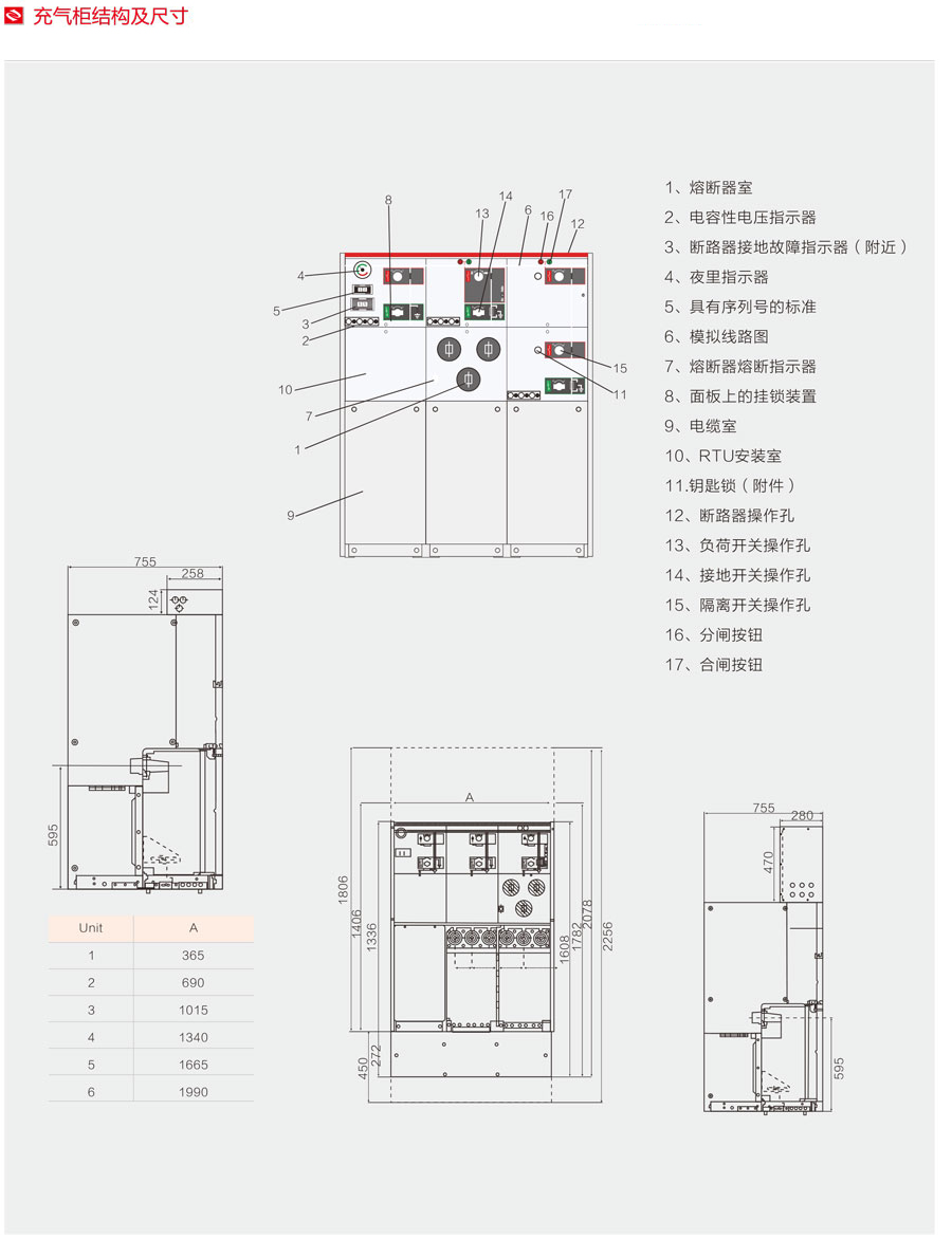 開關(guān)柜為模塊化單元模式,可根據(jù)不同用途進(jìn)行組合;由固定式單元組合與可擴(kuò)展型單元兩大類,滿足各種變電站對緊湊型開關(guān)柜靈活使用的需要。
